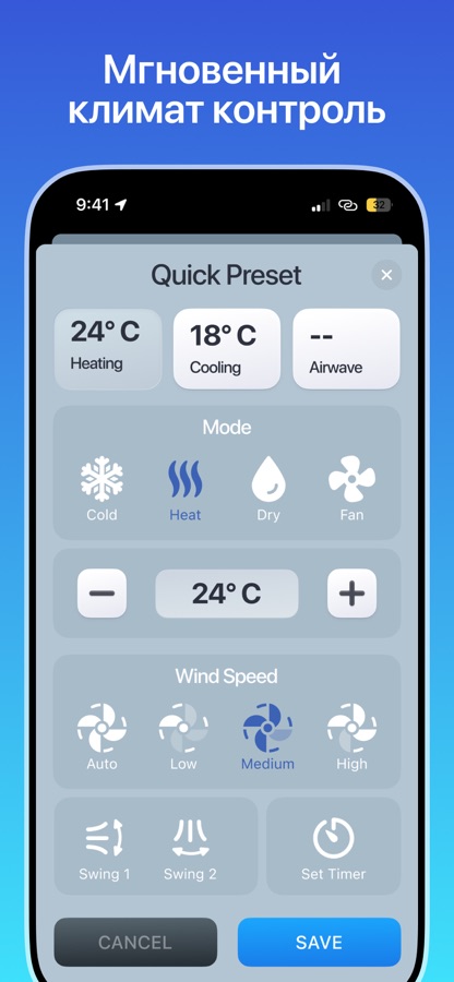 — Достигайте желаемой температуры, переключайте режимы работы, включайте/выключайте, устанавливайте таймеры, регулируйте скорость вращения вентилятора и многое другое.