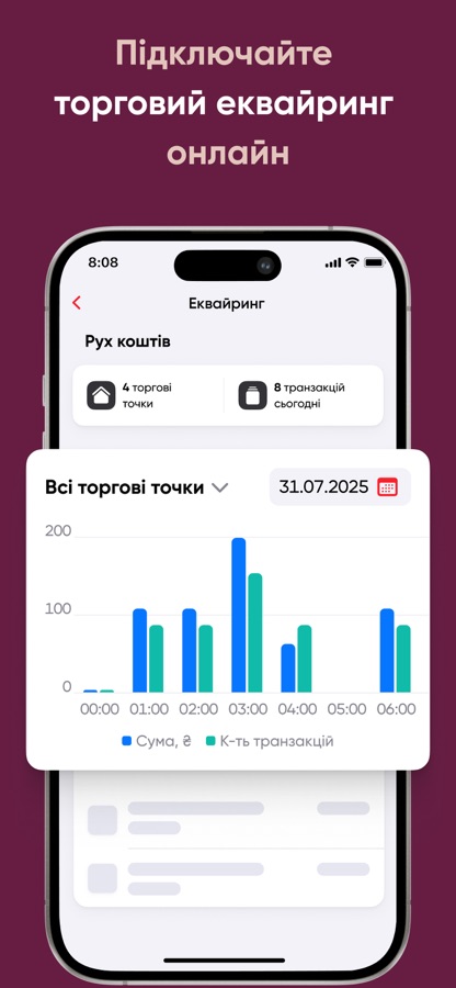 Підключення торгового еквайрингу та терміналу в вашому смартфоні, оформлення кредитів, депозитів і благодійних платежів – розширені можливості для управління бізнесом та соціальної відповідальності.