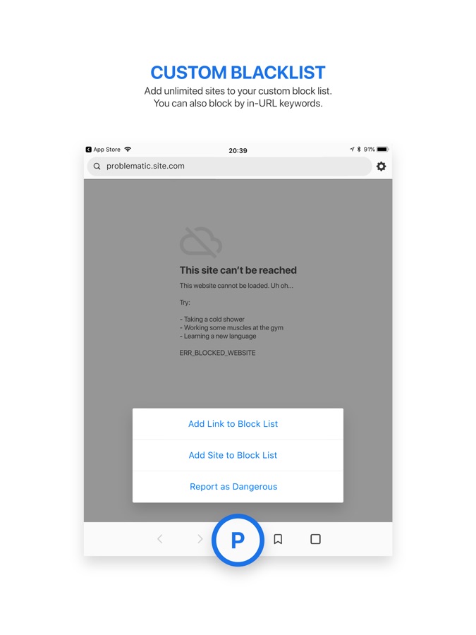 • Block custom domains and keywords