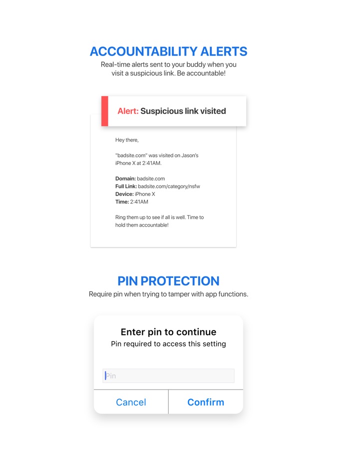 • Accountability alerts for your buddy when you visit a suspicious site