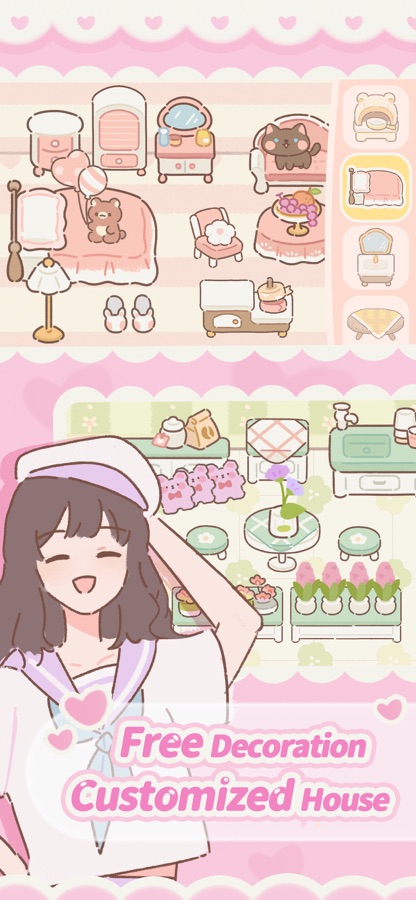 You can have a house of your own to decorate as you like! It has a big floor-length window. You can fill the house up with your favorite furniture and items for your pets. It also has a little yard where you can grow all sorts of plants!