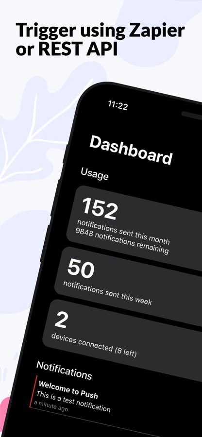 Create an account and connect your Push account to Zapier, trigger a push notification from any Zap using the «Send Notification» action by Push, rejoice!