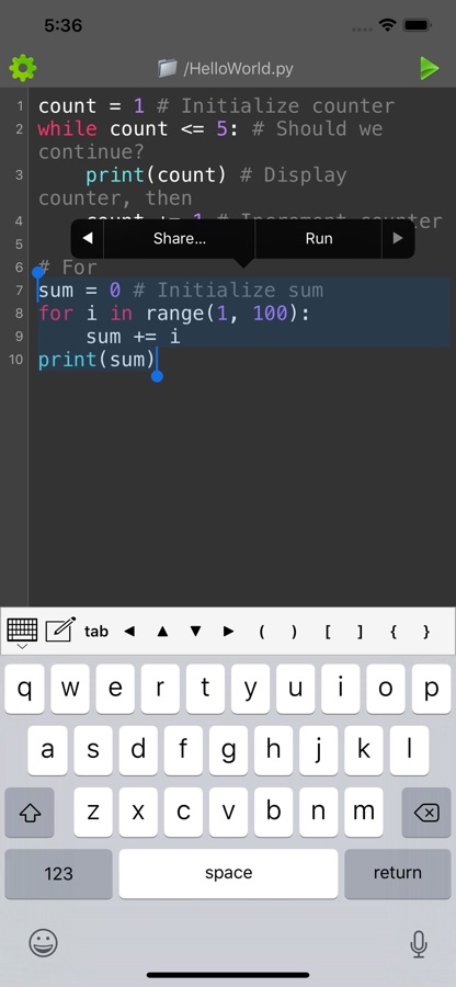 Write Python code directly on your iPhone, iPad and iPod Touch! This app is ideal for learning and testing code snippets!