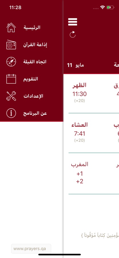 — عرض أوقات الصلاة في دولة قطر بالإعتماد على دار التقويم القطري.