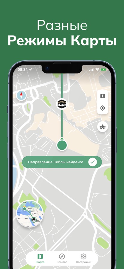 — Вам не потребуется интернет. Приложение 100% Кааба компас — Qibla Finder показывает, где находится Кибла даже без подключения к интернету, благодаря ее функции компаса.