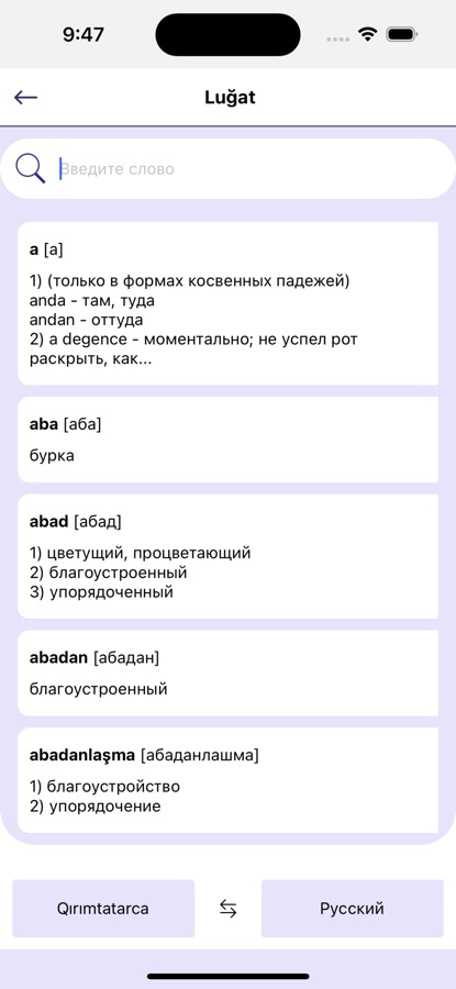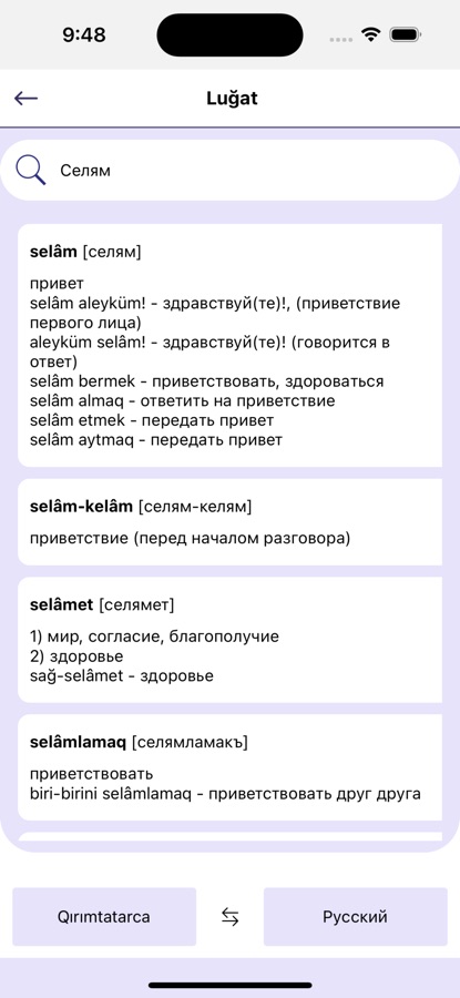 Скачайте приложение Qırımtatar luğatı для iOS бесплатно - последняя версия (2.0.21) уже доступна для установки на ваш iPhone или iPad.