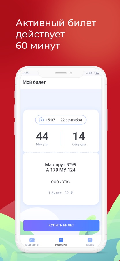 Срок действия билета — 60 минут.