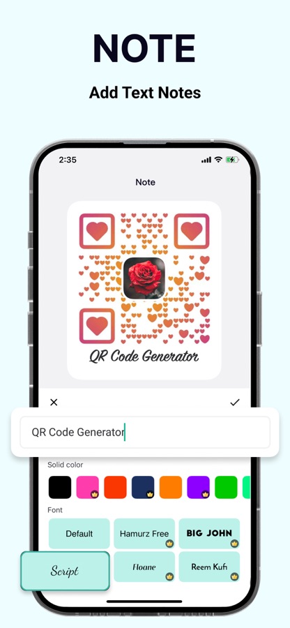 — Text: Making text notes under the QR Code you generate is what you need when you want to explain the QR Code well