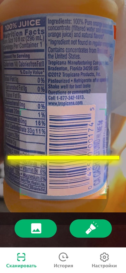 Не нужно подключаться к Интернету. История сканирований сохраняется для удобного просмотра. Можно сканировать QR- и штрих-коды из галереи.