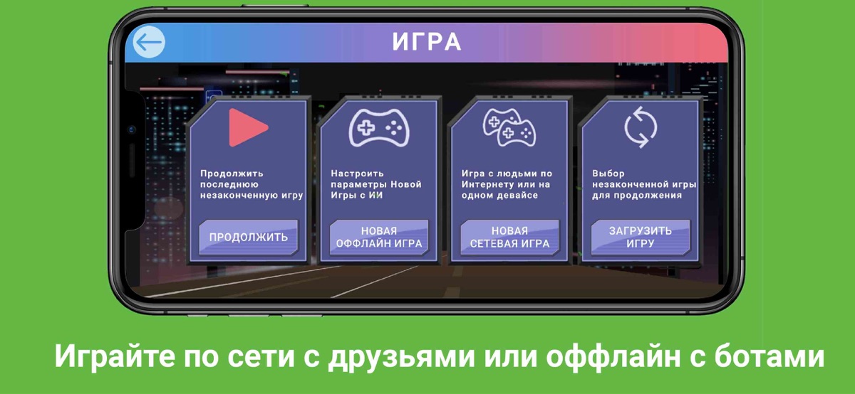 В игре доступен кросс платформенный онлайн режим с возможностью переподключения к Вашей игре после потери Интернета или принятия звонка. По согласованию с игроками, сетевую игру можно отложить на любое время и продолжить позже.