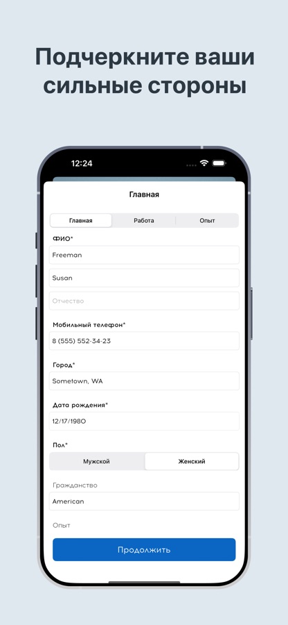 Заполните свои личные данные и опыт работы.