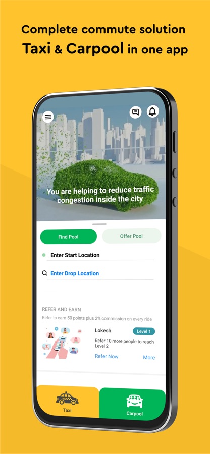Register now to get your first ride FREE / Free reward points for Carpooling.
