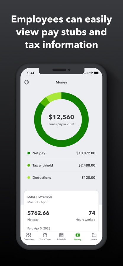 QuickBooks Workforce—an app for QuickBooks Payroll and QuickBooks Time (formerly TSheets)—lets teams view pay info and track time in one place.