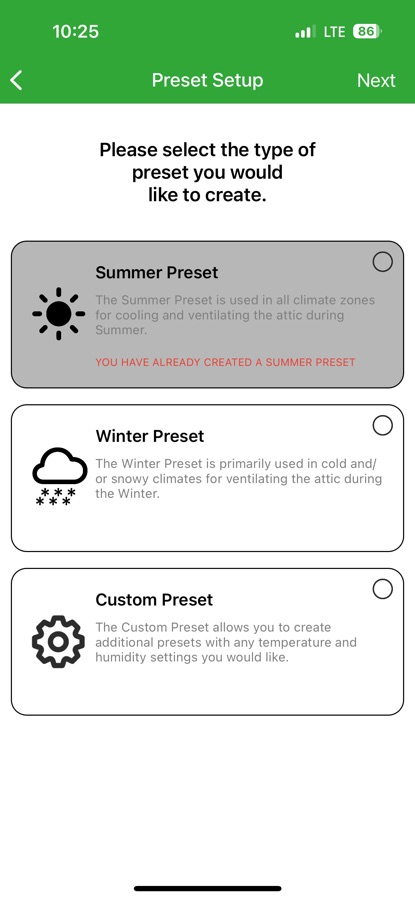— Add presets to your app for easy control of your attic fan