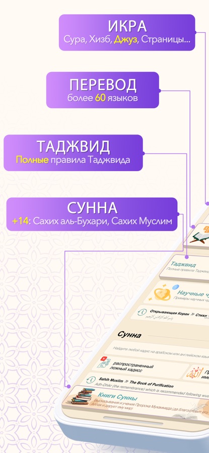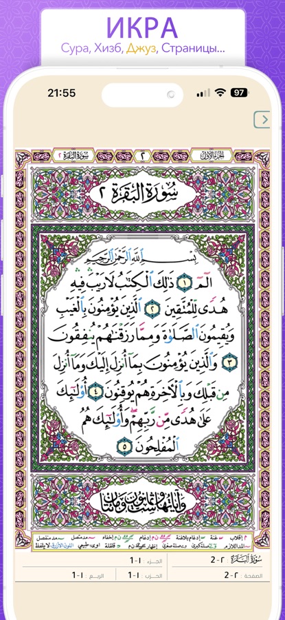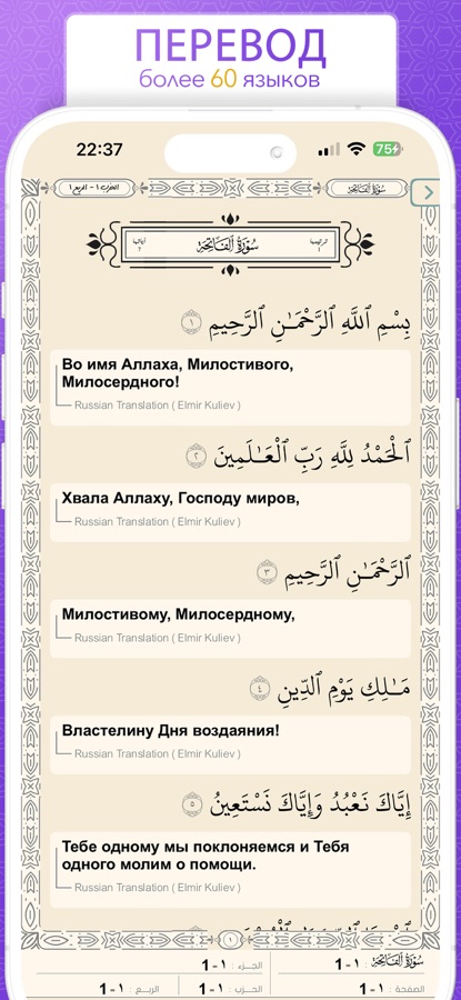 Священный Коран с переводом на 6 языков и переведен на более чем 60 языков без рекламы, Священный Коран с картинками и текстом, с возможностью слушать голос более 100 чтецов.