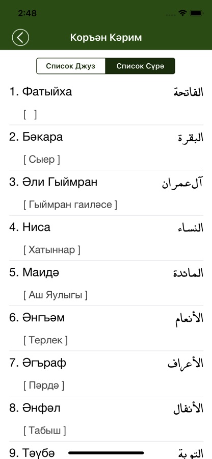 4. Hafizi Коръән (Juz/Джуз & Sura/Сүрә List)
