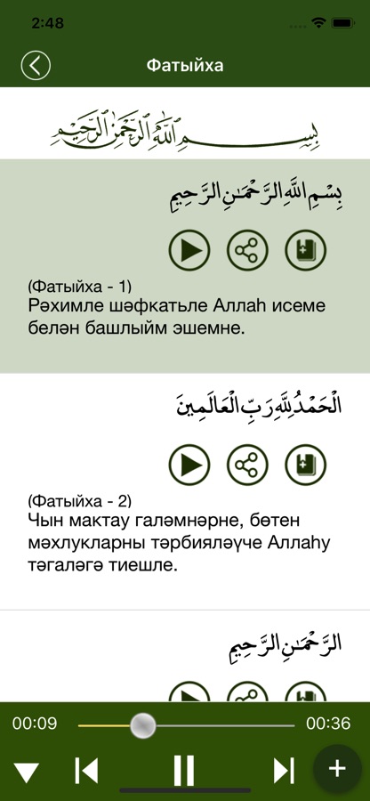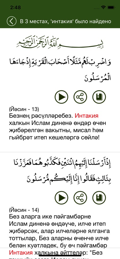 With this Islamic book app, you are getting Hafizi Коръән with real page-curl experience. This is not just a textual app, it is an audio Коръән app. You can listen telwat of Коръән verse/аят continuously (internet connection required). You can search words or topic in татарча on this iOS Korán app. Bookmark the verse/аят you like / quote. Share the verse/аят you want.