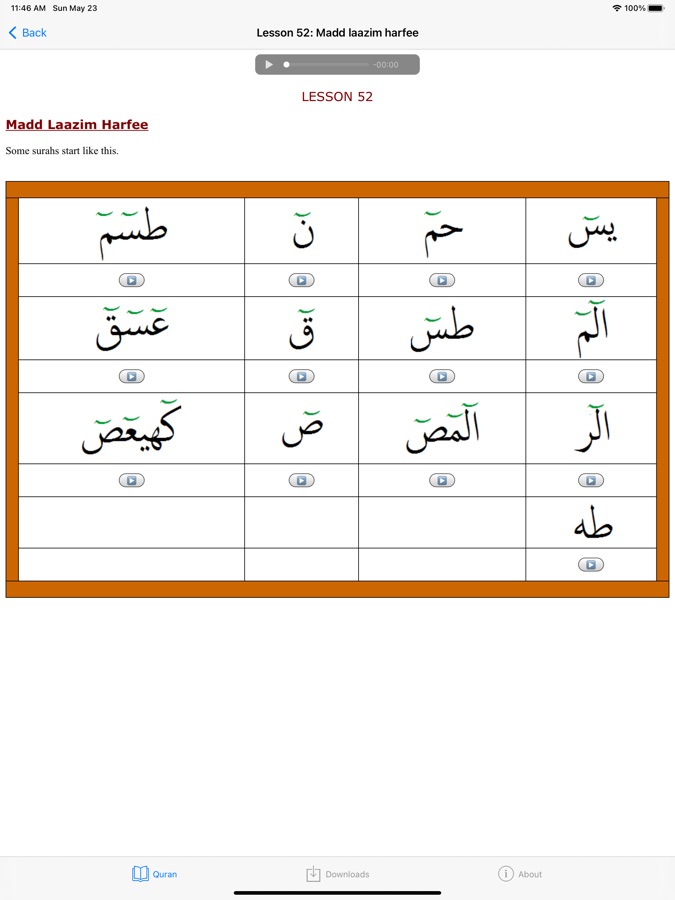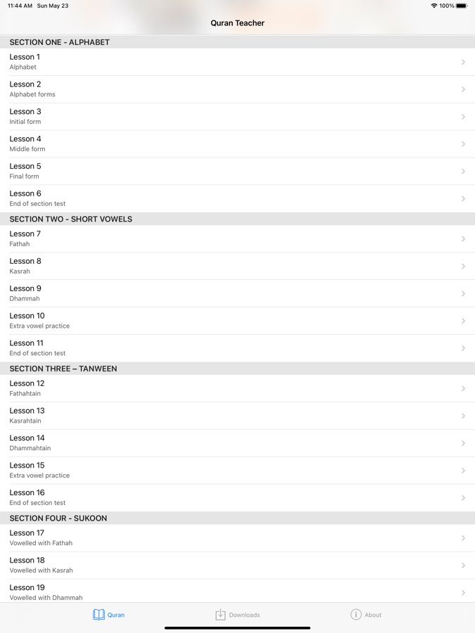 100% FREE Quran Teacher helps you learn the Quran. No subscription. No sign-up. No internet required. No cost. No in-app purchases. All lessons are free and available offline.