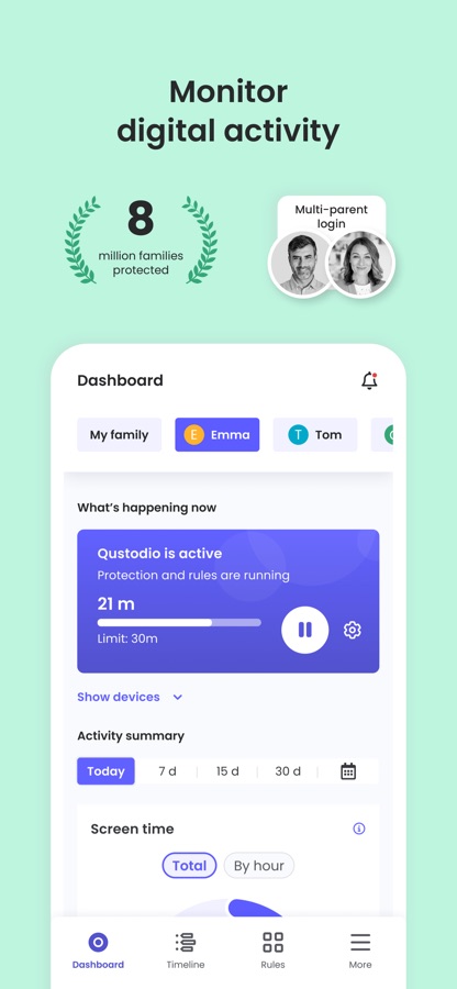 Start by downloading this Qustodio Parental Control App onto your device. Then download the Kids App Qustodio companion app onto your child’s device or devices. Our two monitoring apps work together to give parents all the tools they need to protect their kids online and encourage a healthy, balanced digital presence.
