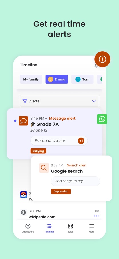 • Receive social monitoring alerts. (available WhatsApp, Instagram, and Line)