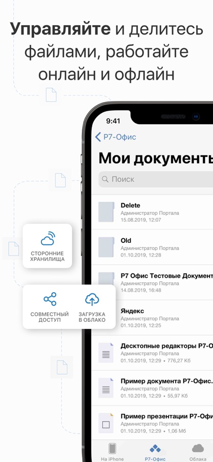Приложение «Р7-Офис. Документы» предназначено для работы с файлами, сохраненными в облаке Р7-Офис, а также с документами с вашего устройства. С его помощью можно: