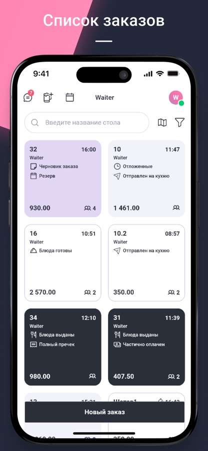 * Интуитивно понятный интерфейс делает процесс приема заказов простым и удобным
