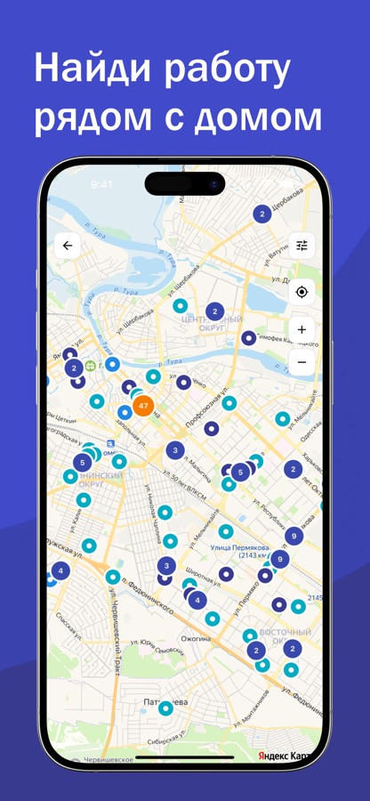 Интерактивная карта с геолокацией покажет все вакансии и услуги рядом с вами. Откройте приложение и найдите работу не выходя из дома.