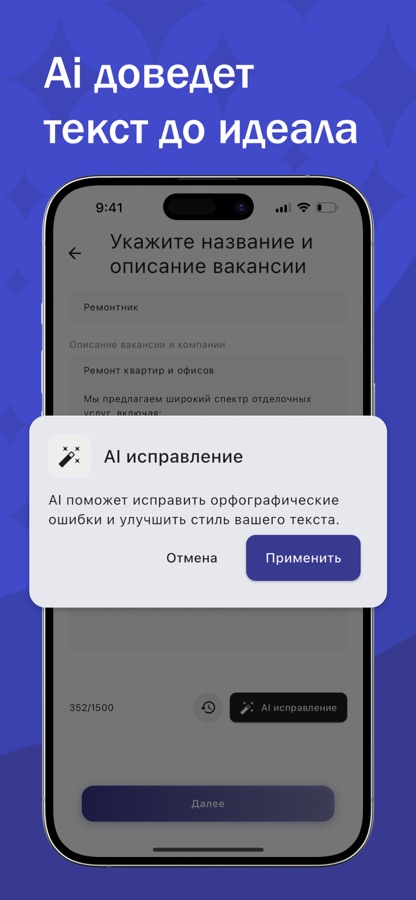 Создавайте вакансии, резюме или объявления о подработках мгновенно. Интуитивные формы, умные подсказки и готовые шаблоны — процесс занимает считанные минуты.