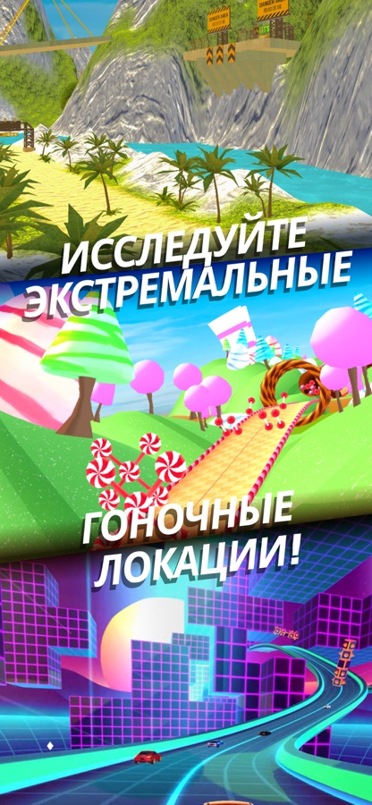• Гонки по всему миру: 7 уникальных локаций с разными характеристиками трасс и детализированными фонами. Рампы, тоннели и 14 различных неоновых эффектов.