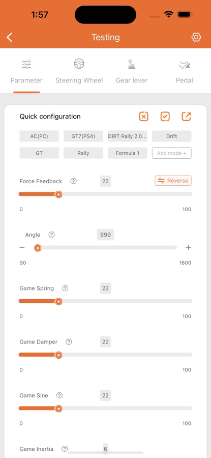 Adapted to the force feedback steering wheel and direct drive steering wheel produced by us, the steering wheel can be adjusted in real time through Bluetooth!