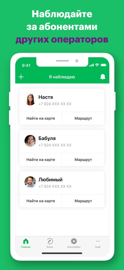 С помощью приложения вы сможете определять текущее местоположение абонентов сети МегаФон, Билайн и МТС, а также просматривать маршрут перемещения абонентов МегаФона и контролировать вход/выход из заданной географической зоны.