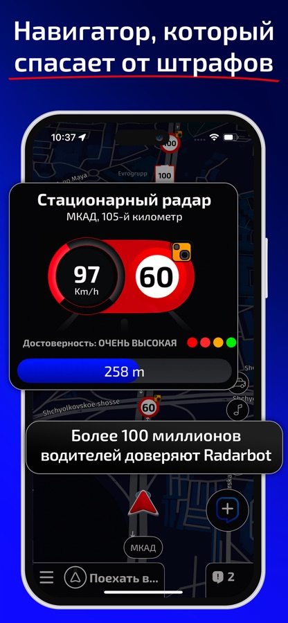 Radarbot – ваш GPS-навигатор и эксперт по радарам. Водите безопасно и забудьте о штрафах навсегда. Наслаждайтесь ездой!