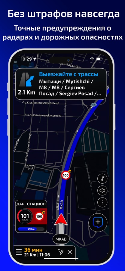 Водите спокойно и уверено, не подвергая риску свои водительские права и безопасность. Избегайте штрафов благодаря четким и своевременным оповещениям обо всех радарах: