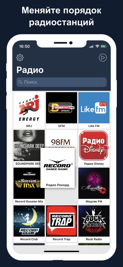 — Перемещайте радиостанции и выстраивайте свои любимые станции друг за другом