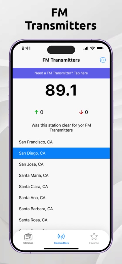 WELL NOW, there’s an easy way to find exactly which station is the clearest for your FM Transmitter and you can constantly update your location so your music will always remain playing with no interruption.