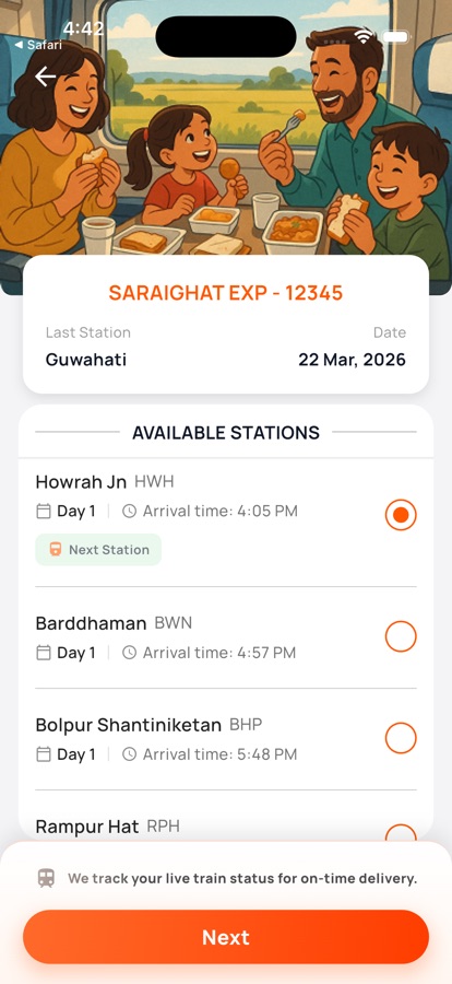 ● Choose a preferred station to receive your train food.