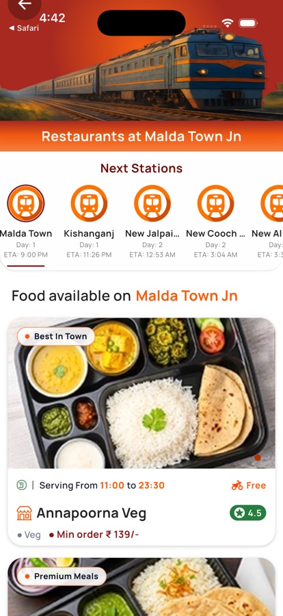 Explore train food delivery from top restaurants and enjoy the trip with a changing landscape. RailRestro train app makes train journeys delicious with multiple cuisine options. Experience a variety of food options for train dining at 500+ railway stations across India.