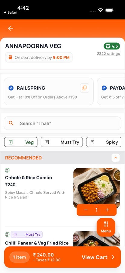 RailRestro — Food in Train