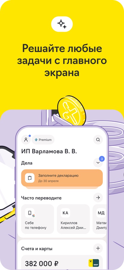 Управляйте деньгами компании в приложении — онлайн, круглосуточно и в любом месте. С онлайн-банком на смартфоне легко контролировать остатки и операции по счетам, отправлять платежи и переводы в любой банк или в бюджет, вести бухгалтерию и отчитываться перед налоговой.