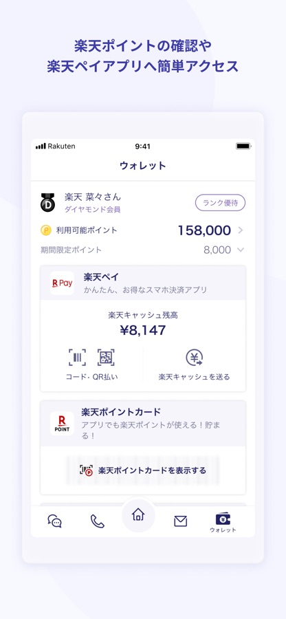 ■ウォレット:楽天ポイントの確認や楽天ペイアプリへ簡単アクセス