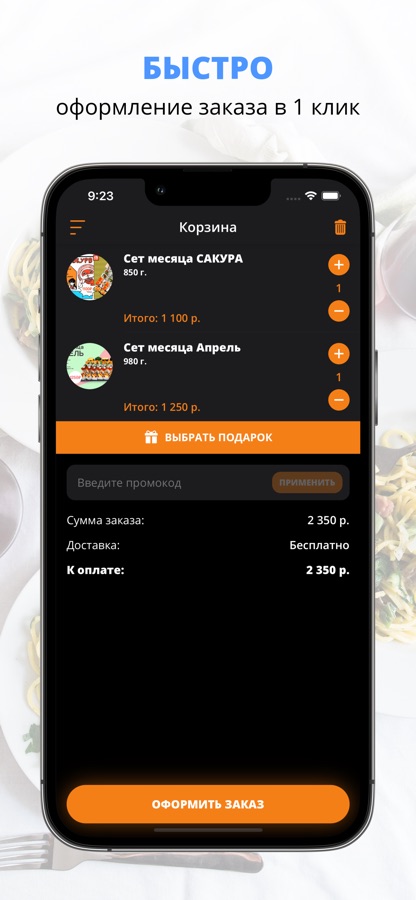 Скачивайте наше приложение, оформляйте заказ и наслаждайтесь любимой едой, где бы Вы ни были! Приятного аппетита!