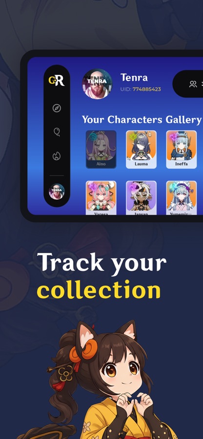 Create your profile, set a nickname and UID, choose an avatar, and share your character gallery.