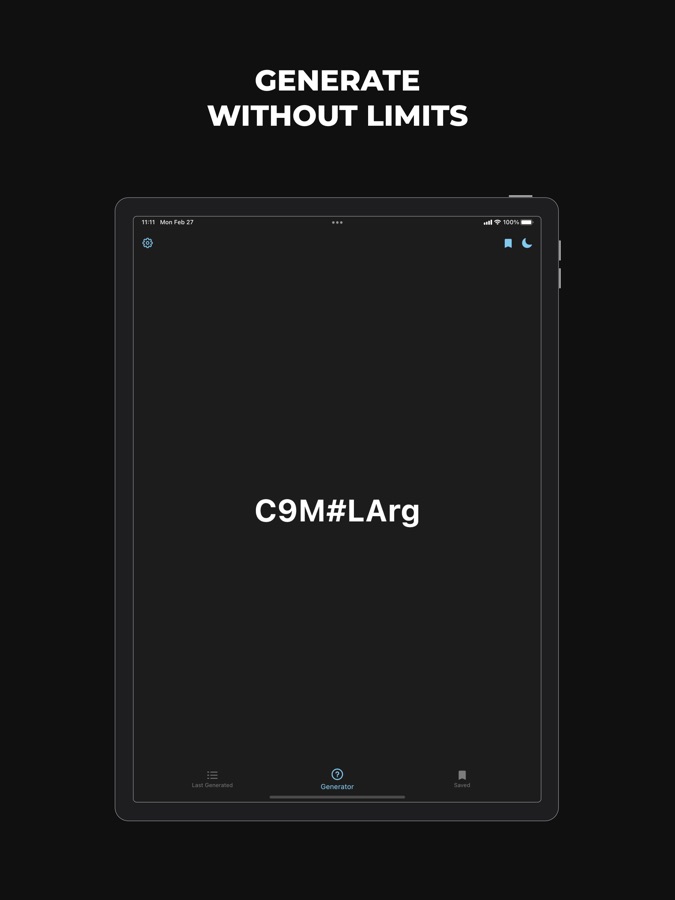 Созданные из идеального сочетания строчных и заглавных букв, цифр и специальных символов пароли невозможно взломать методом перебора. Это приложение гарантирует, что ваши пароли — это ваша самая надежная линия обороны.