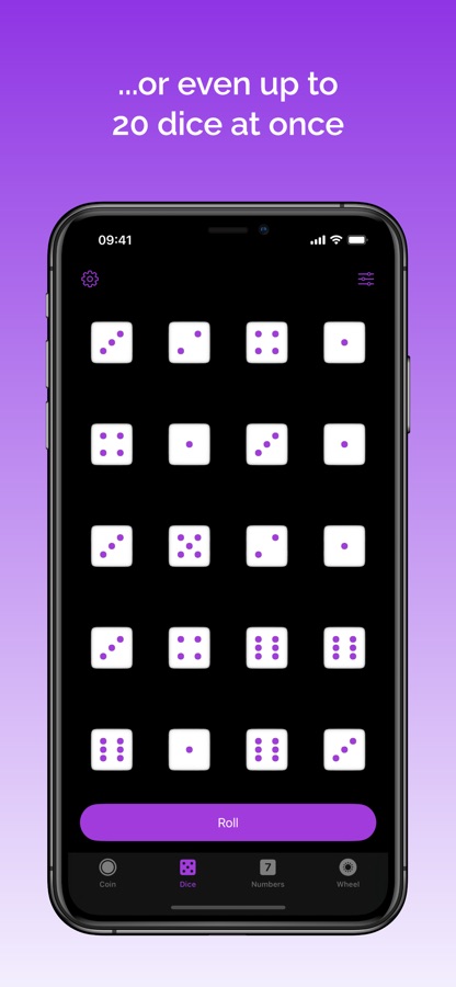 Randomize everything — flip a coin, roll a die (even up to 20 dice at once), generate random numbers and spin a colorful wheel of fortune. Let the app decide for you!