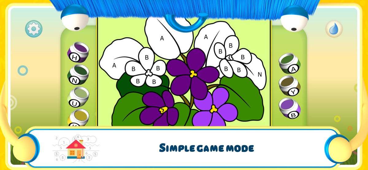 Раскраска будет интересна мальчикам и девочкам любого возраста. Для самых маленьких, детей детсадовского и дошкольного возраста, подойдет простой режим раскрашивания. В нем картинки простые и узнаваемые, их легко раскрашивать. Если выбрать неправильный тюбик, то появиться подсказка с правильным номером. Поэтому картинка всегда будет раскрашена правильно, а малыш быстро запомнит цифры. Вместо цифр можно выбрать раскрашивание по геометрическим фигурам и значкам. Ребенок легко отличит квадрат от круга, ромба, треугольника.