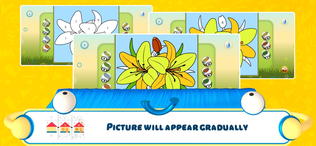 Раскрась по номерам — это интерактивная книжка раскраска для детей. Эта математическая игра научит распознавать числа и решать простейшие математические примеры. Кроме того, эта программа развивает память, внимание, воображение, логику.