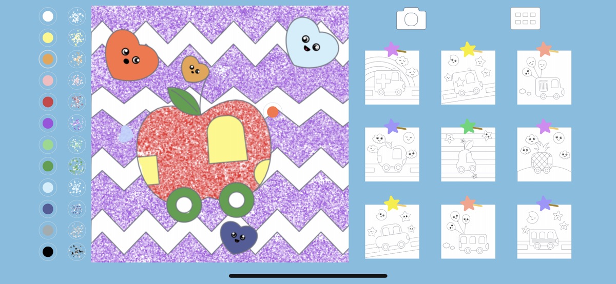 Ваш ребенок может раскрашивать бесконечные изображения различных транспортных средств: машины, полицейские машины, пожарные машины, машины скорой помощи, школьные автобусы и даже забавные машины в форме фруктов, такие как яблоки, груши, клубника и многое другое! Нажмите на волшебную палочку, чтобы открывать новые изображения каждый раз.