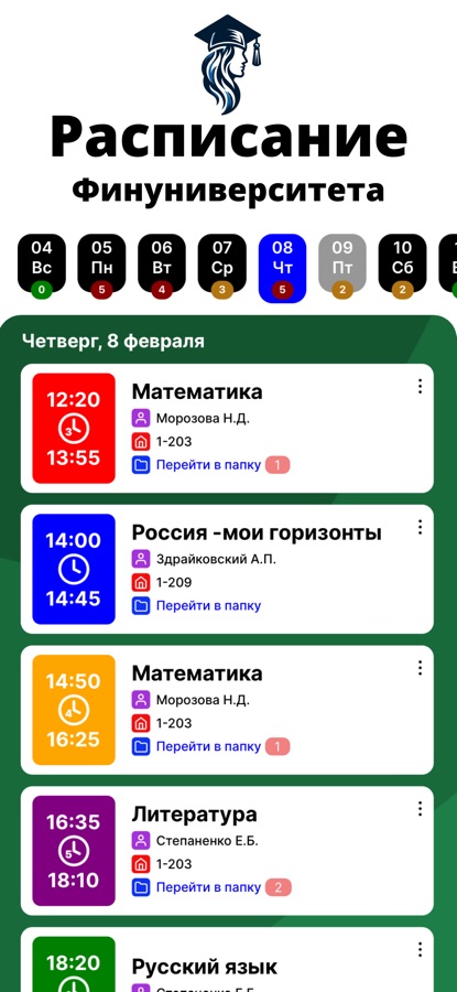 Смотри расписание занятий Финуниверситета в мобильном приложении!
