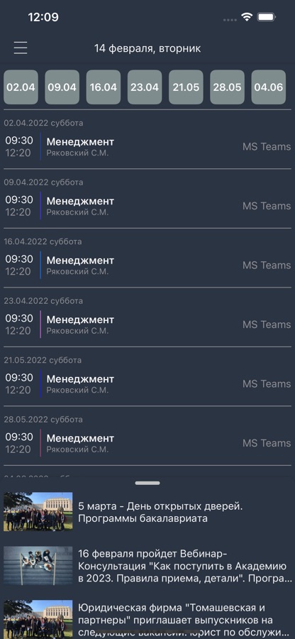 4. Новости и события академии + виджет (iOS 14)