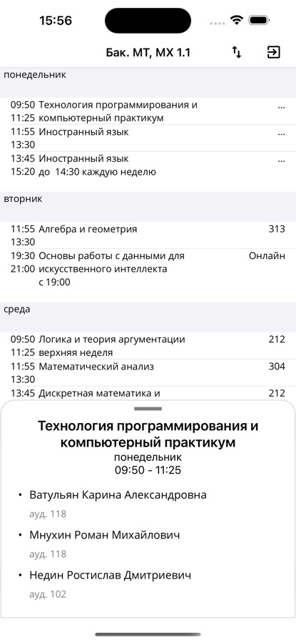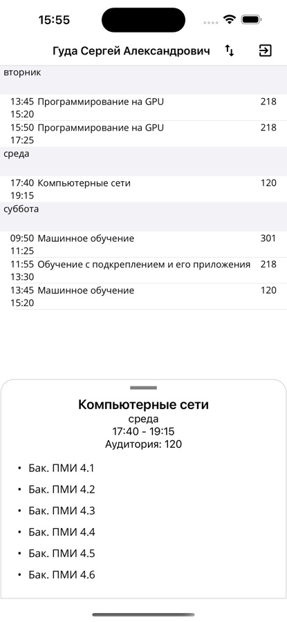 Приложение позволяет быстро и удобно находить актуальное расписание занятий Южного федерального университета.